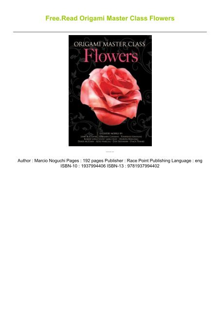 Origami Master Class Flowers by Marcio Noguchi 9781937994402 download free ebooks Download free PDF EPUB ebook. Marcio Noguchi File Size.